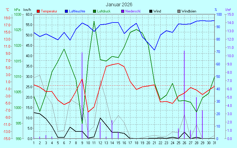 2026 Die Standardabweichungen von Temperatur und dem Niederschlag wird aus den gemessenen Werten der Wetterstation von Bad Tabarz und den Mittelwerten vom DWD aus 29 Jahren ermittelt. Die Mittelwerte vom DWD finden Sie hier (pdf- Datei 500kB). Jahresverteilungsgrafiken
