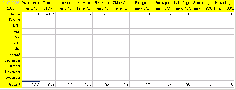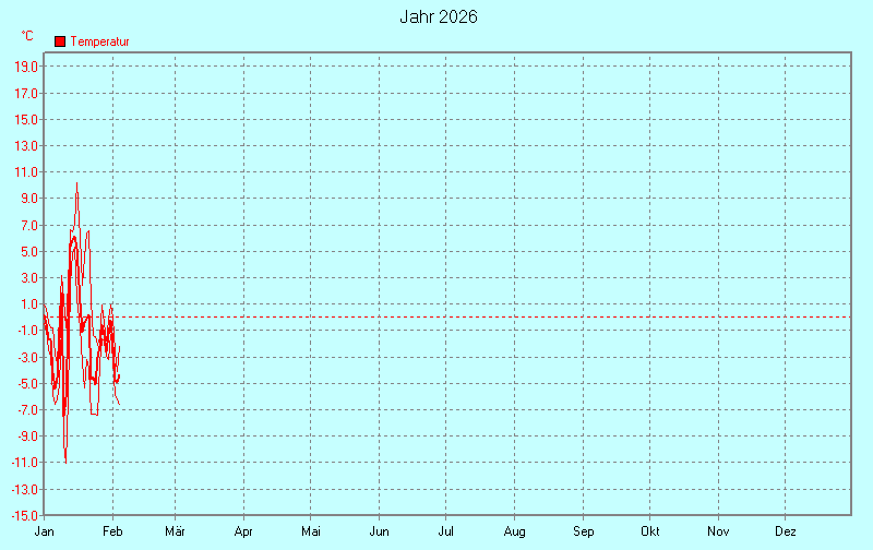 Darstellung der Temperaturwerte aus der oberen Tabelle für das Jahr 2026 Grafik