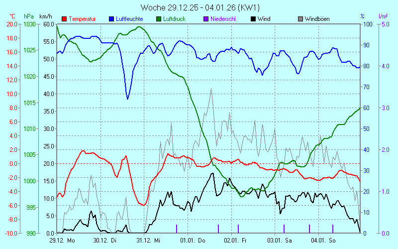 Wochen- Wetteraufzeichnungen von Bad Tabarz |