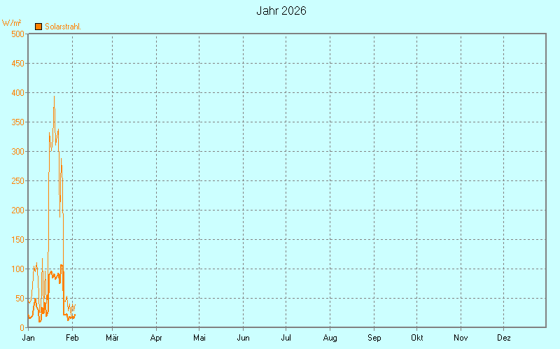 (Globalstrahlung) in W/m² und somit die Sonnenscheindauer erfasst. Von