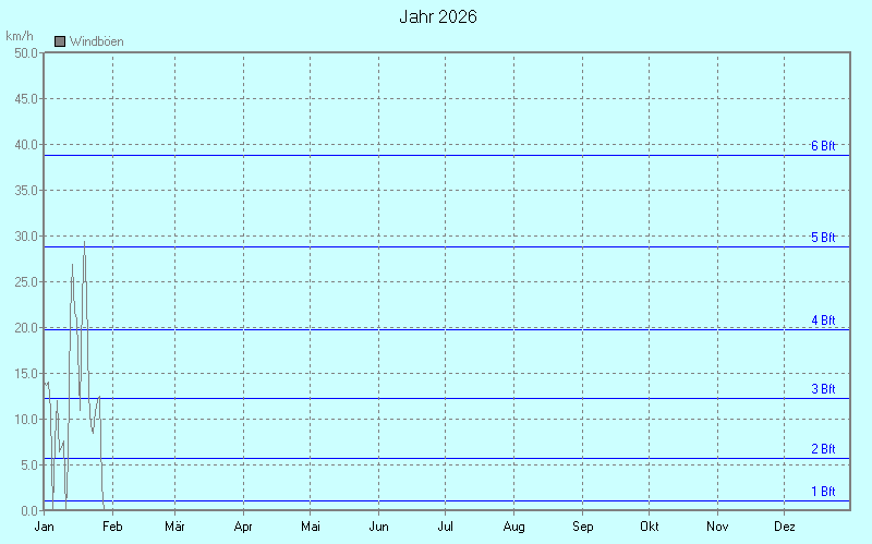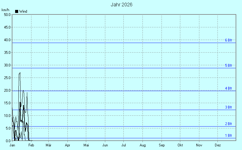 Windrichtung wird nicht mit aufgezeichnet, da die Wetterstation standort- und geländebedingt nicht von allen Seiten