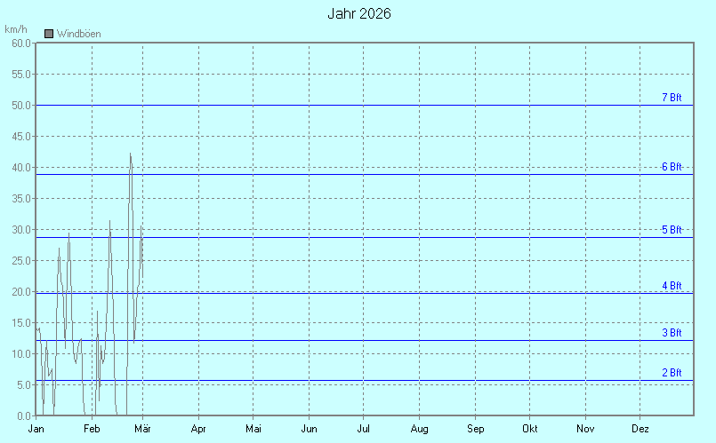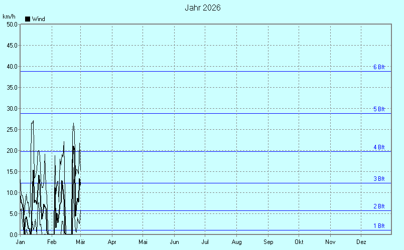 Windrichtung wird nicht mit aufgezeichnet, da die Wetterstation standort- und geländebedingt nicht von allen Seiten