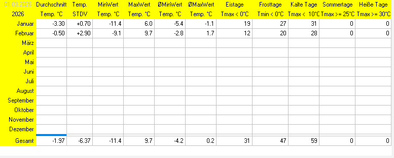 Darstellung der Temperaturwerte aus der oberen Tabelle für das Jahr 2026